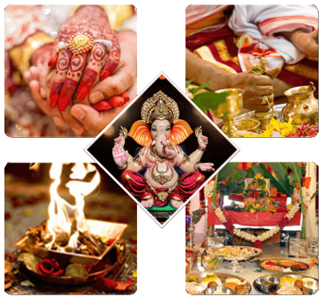 Our pandits perform rituals like Havan, Yagya, Shanti Vidhi, Shubh Vivah – Wedding Ceremony, Satyanarayan Katha, Griha Pravesh, Namkaran Sanskar, Nava Graha Shanti, Engagement, Festival Puja, Janeu, Ganesh Puja, Ram Katha, Mundan Sanskar, Shrimant Puja, Namkaran, Bhagwat Katha, Vastu Shanti, etc.